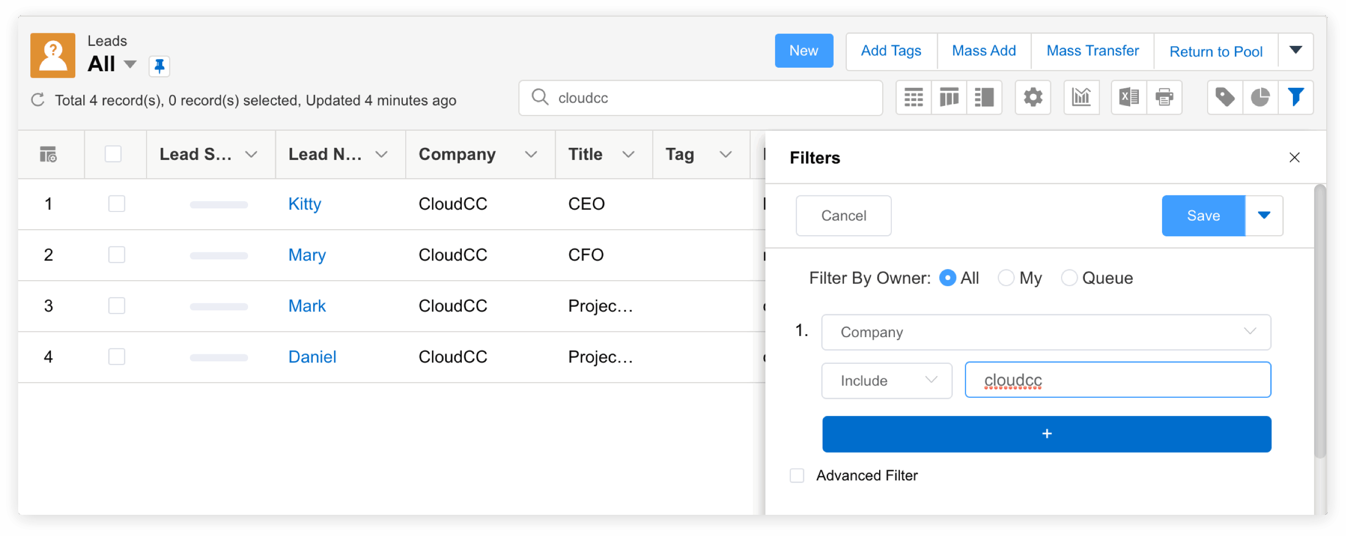 Para garantir a qualidade dos dados, vamos usar a função de verificação e filtragem. As regras de filtragem de detecção duplicada podem ser definidas como segue: As duplicatas são identificadas quando o número de telefone e o endereço de email são os mesmos. Se um usuário entra ou edita um lead com os mesmos campos de número de telefone e endereço de email, então o registro não pode ser salvo.
