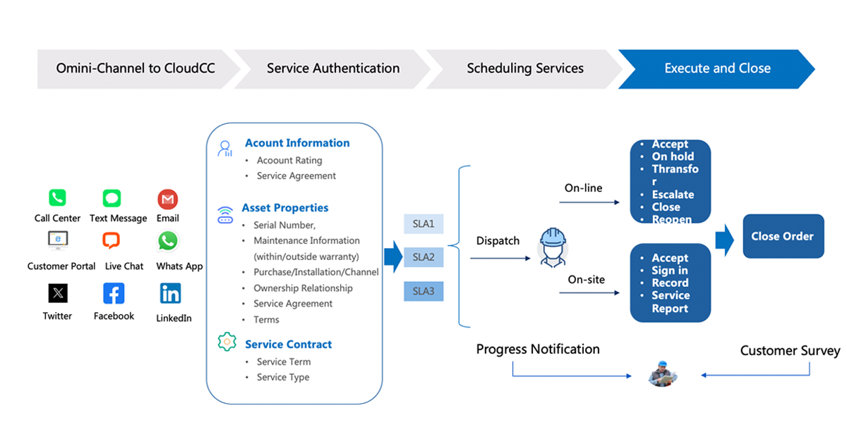 On-site Service Cloud Features of CloudCC CRM: