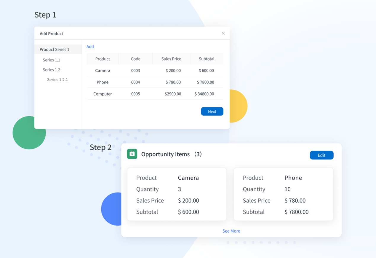 Step 1: Select the most appropriate product Choose from the products already in the system. With just a few clicks, your sales team can find the product that perfectly matches the prospect's requirements.