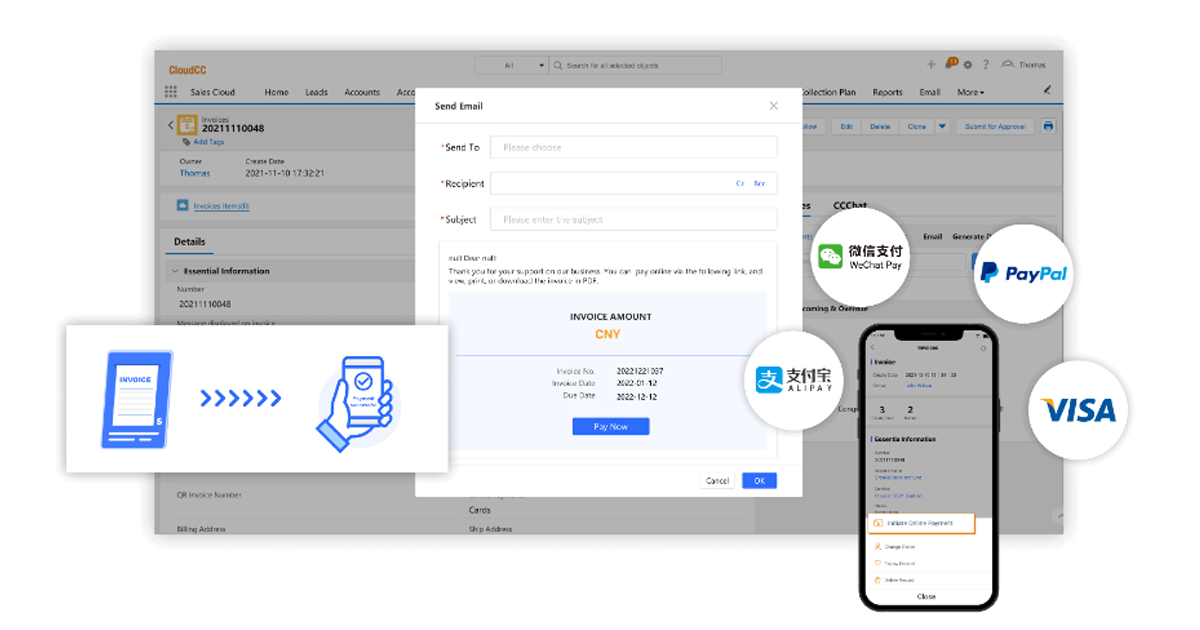 2. Personalized User Permissions: Within CloudCC CRM's Partner Cloud system, you can assign different payment permissions to different users. You can specify which users are eligible to use the online payment functionality and which payment methods they can access.