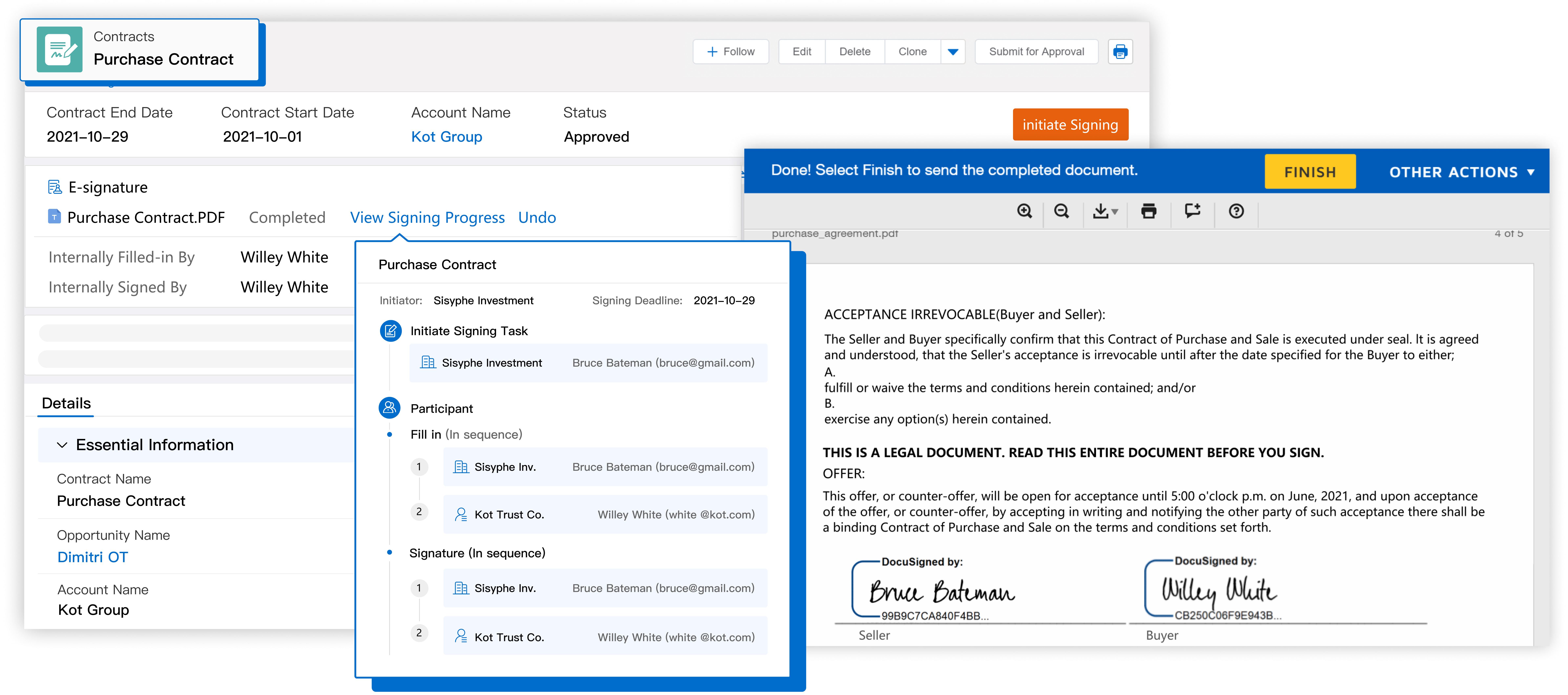 Erfassen Sie Kundenaufträge und Verträge in CloudCC, erstellen Sie Forderungen und wickeln Sie Zahlungen ab. Schließen Sie Geschäfte mit Sales Cloud schneller ab.