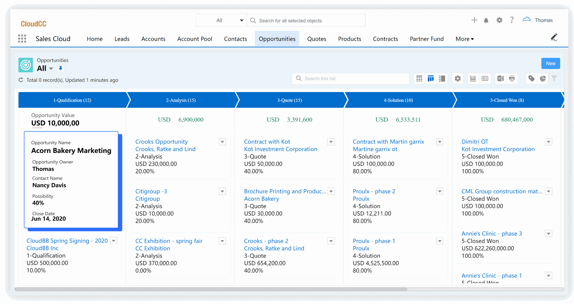 CloudCC CRM présente l'entonnoir des opportunités de plusieurs façons afin de faciliter la gestion et la progression des opportunités de vente et de réduire les risques de perte.