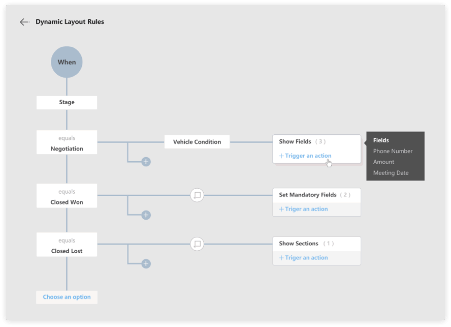 Если каждому этапу вашей возможности соответствует своя информация, ее трудно вводить, когда все поля отображаются на одной странице. CloudCC предоставляет динамические макеты страниц для отображения необходимых полей в соответствии с определенными критериями. Давайте упростим пользователям заполнение формы.