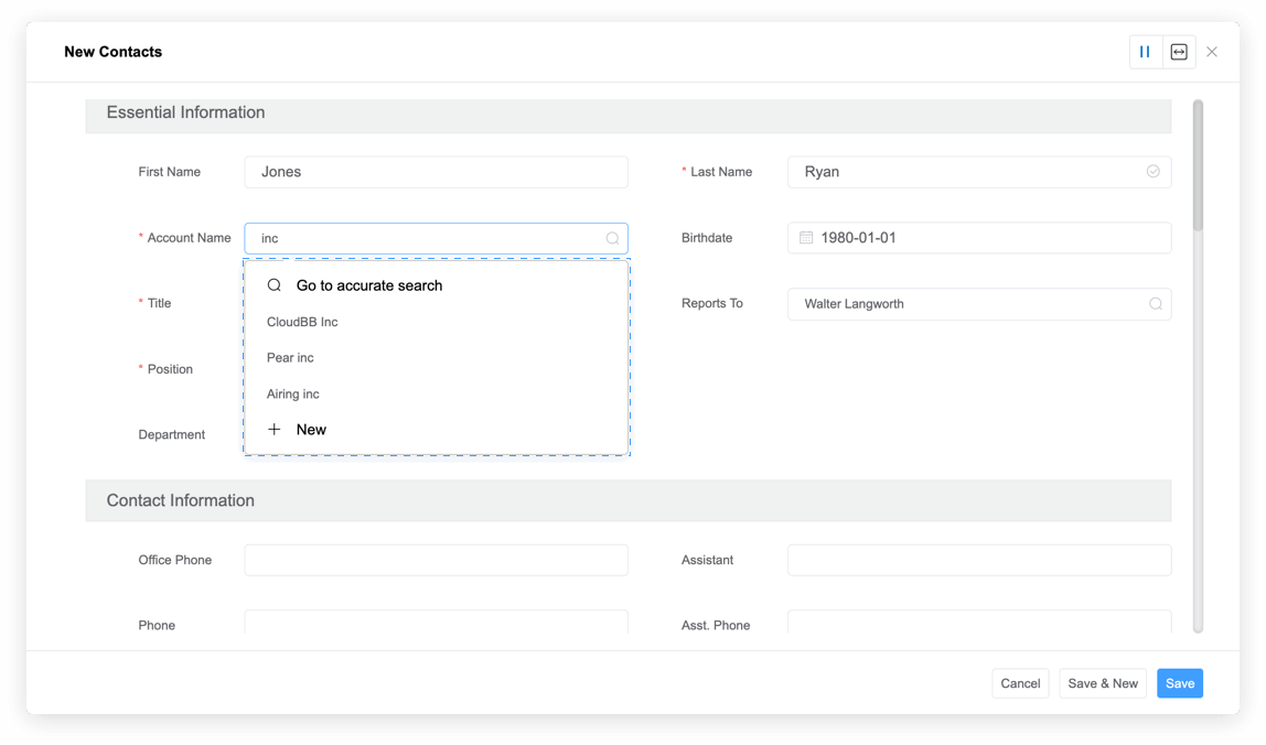 CloudCC предоставляет функцию объединения документов для загрузки документов в библиотеку шаблонов. Например, для модуля контракта эта функция может динамически генерировать в документ такие поля, как название счета, дата начала контракта, дата окончания контракта, сумма контракта и т.д. Вы можете быстро определить шаблон договора и загрузить его в библиотеку шаблонов. Выберите шаблоны в разделе "Создать документ" в модуле "Деятельность" на странице сведений о записи и автоматически создайте текстовый файл договора. Документ можно отправить на печать или вложить в электронную почту. Это повышает эффективность работы торгового персонала.